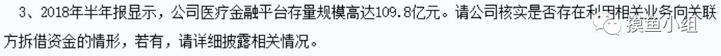 如果你仔细看公司 8 月 25 日公布的中报,可以看到公司医疗金融平台的规模已经到了 100 多亿,但正因为大家没有仔细看报表的习惯,这个雷一直藏到上交所发的问询函,才进入到大家的视野中,整整晚了一个多月。