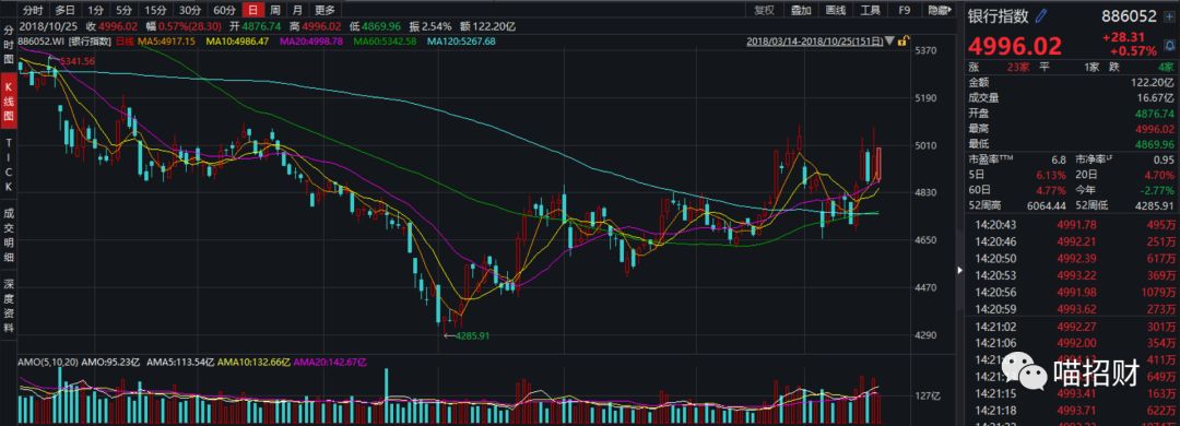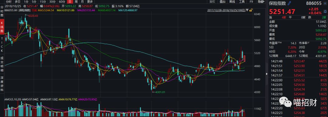 同理,保险指数的最低点也锁定在今年7月3日。两个行业都呈现震荡走高底部不断抬高的趋势。均线系统逐渐进入多头发散趋势。背后正是资金持续吸纳的过程。