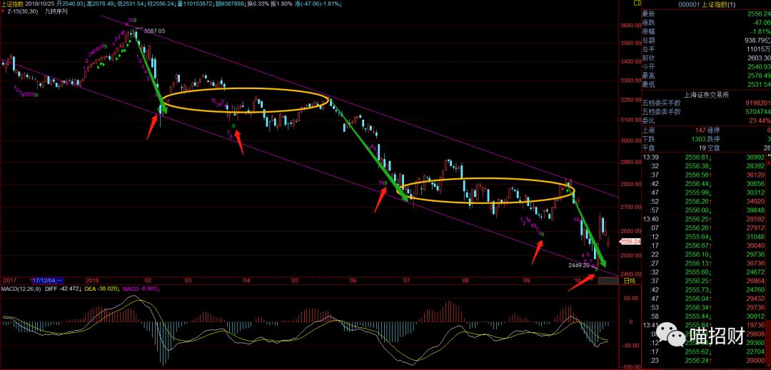 10月19日的反弹起点,恰好是九转序列叠加skd的超跌指示,与通道线结合判断的超跌反弹。