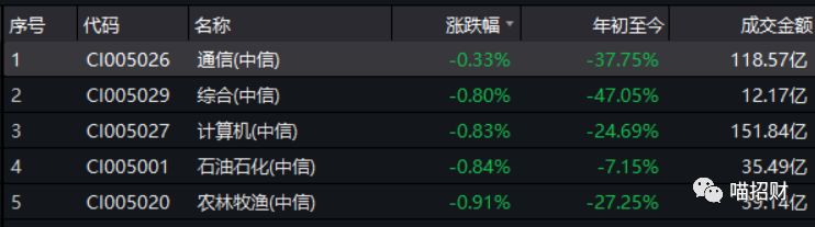 热点方面,机会乏善可陈。通信板块位列两市涨幅第一,但板块涨幅依然翻绿。5g内部轮动分化,赚钱效应不大。说明大消费出来的资金,很小幅度流入了成长板块,大部分资金还是选择了离场观望。