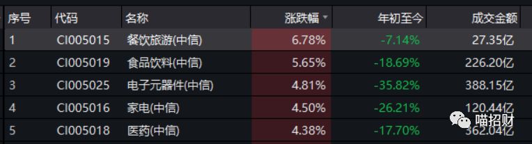 2. 大消费的持续反弹,占领涨幅榜。这与数据上外资大笔买入有关,因为消费股一直是外资青睐的方向。