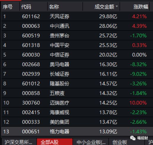 今天市场仍旧是题材股的天下,创投领衔,上海自贸区贯穿。主流机构板块几乎呈现全面资金净流出的状态。从两市成交排行能够看出,仅仅三只个股开盘有正收益,分别是中兴(5G)、平安(保险)、迈瑞医疗(医疗器械)。说明成交金额靠前的机构票赚钱效应不大。但中兴作为科技板块的晴雨表,今天A股和港股联动拉升,颇有一些博弈外盘事件走势的意味,值得关注。