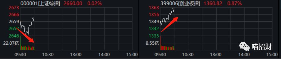 今天早盘市场形成剪刀差效应。即创业板指和上证指数走势出现背离。创业板开盘前半小时持续拉升,而沪指则掉头向下,开盘半小时,短线策略的交易者基本可以看出一天的风格走势。