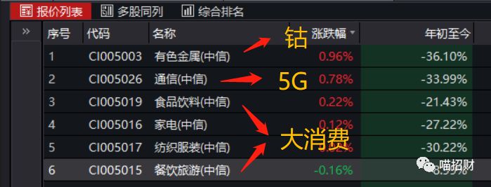 科技股:乌镇的互联网大会今天召开,对计算机等科技板块形成刺激。云计算、自主可控等贯穿今年行情的主线题材再次活跃。通信板块大幅异动。中兴通讯继昨天尾盘强势拉升后,今天再次冲高,一度接近涨停。5G的进展作为目前科技领域最引人注意的技术,市场非常关注频谱下发的进展,有传言近期落地。另外,上周有媒体报道5G牌照有望年底发放,从某种程度均对板块情绪形成一定提振。