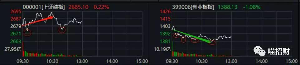 早盘市场反映了周末消息面的变化,从集合竞价开始,金融地产便呈现强势特征,而中小创等成长股开盘弱势。