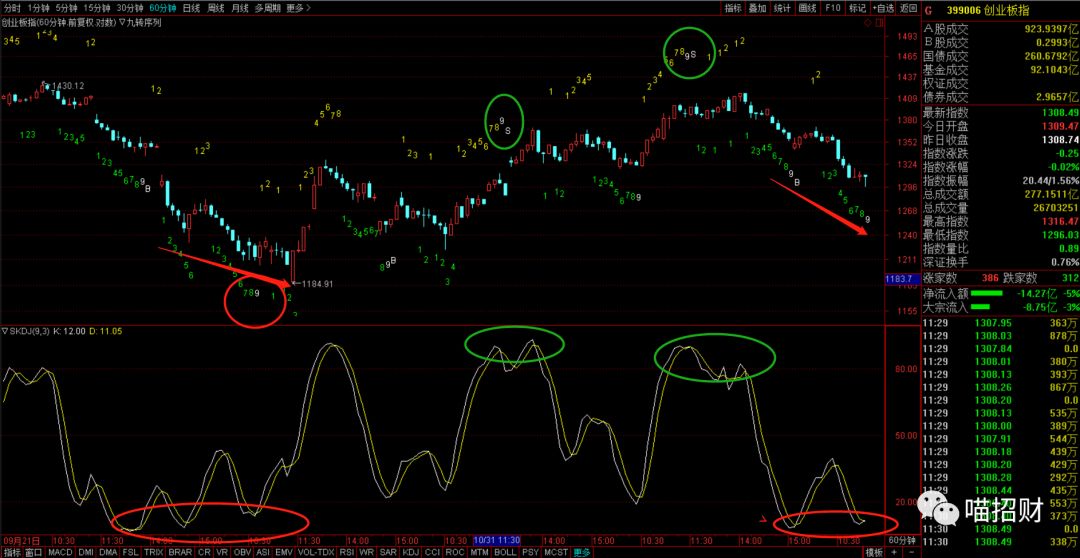 由于创业板指振幅更大,调整时间更久。日线上已经呈现连续7天的调整周期,震荡指标在午盘出现了低位特征,60分钟周期skd出现低位钝化,同时时间序列出现低9。短期需要关注市场能否止跌,特别是创业板指,下午两市的调整主要是沪深主板的新低,而创业板指低点在上午出现。关注创业板指是否能够提前见底展开反弹。