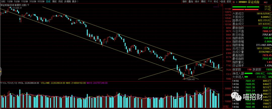 市场小幅高开稍作反馈后便逐级回落,午后跌速加快。消息面没有过多的利空因子,市场的核心问题还是来自流动性吃紧以及对于周末事件的避险心理。短期技术形态吞没昨日的小阳线,反包的中阴线走势难看。深成指再次打到前低附近,叠加趋势线的位置。