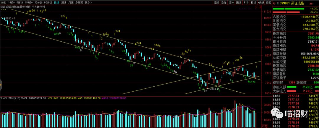 今天的指数分析很简单,日线角度反复确认这个低点的位置,同时等待消息面的明朗,市场缩量。时间序列日线下午如果收阴线就会出低9,但尾盘的上拉导致没有出现信号。应该是场内资金对于周末事件的博弈结果。