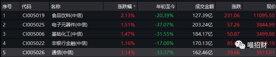 今天食品饮料中的白酒领涨两市,食品饮料是本轮市场反弹反而创新低的板块,基本面市场担心明年的业绩会增速不及预期,同时对提价也没有预期了,悲观情绪达到了比较高的程度,再叠加前一段市场传言对于白酒征税的消息打压,板块一直没有太大机会。小组也早早就把板块的评级打入震荡,一直没有谈过食品饮料的机会。