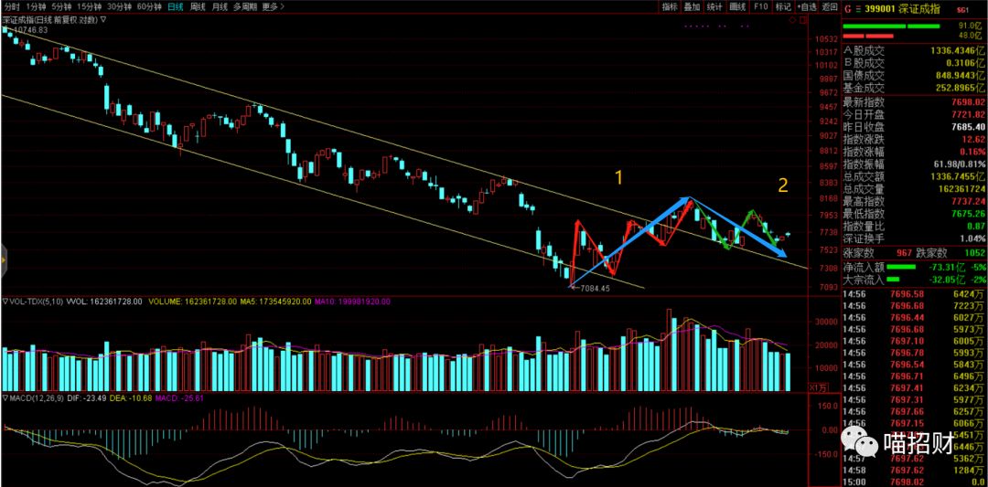 指数目前的状态,在预期的abc回调的c段,这一笔调整时间周期已经接近前一波的时间(6-8个交易日)。观察调整速率,目前是缓慢温和的调整,说明下跌力度是趋缓的。结合消息面上贸易摩擦局部边际缓和、年底经济会议定调下有政策礼包。这是一直不太悲观的理论基础。