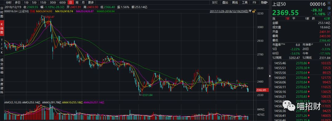 今天招商银行午后大跌,带动了指数出现比较大规模的跳水。进而使得上证50大跌,收盘价已经逼近今年新低,上证50这一横盘近6个月的箱体,有跌破的风险。50指数短期的弱势,反映了流动性和基本面预期较差,价值资金的信心不足。