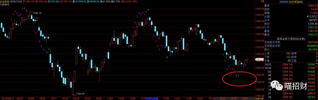 上周四判断短期市场可能接近一个小级别的低点,并用创业板指和深成指的120分钟线做了分析。并且量化指标分析创业板指领先主板指数2小时左右的时间周期。