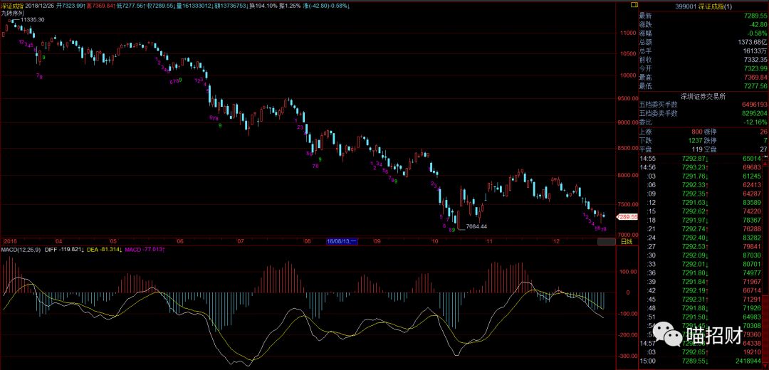 2500点以下更像一个减速带,市场在这里会形成持续的刹车,就像这两天的折返操作,像一段急速运行的列车,不可能一次性的刹住,而是需要几次的点刹,盘面上的下影线的反复揉搓就是点刹的痕迹。深成指明天收盘价低于7337.6点,将出现日线级别的震荡低位指示。