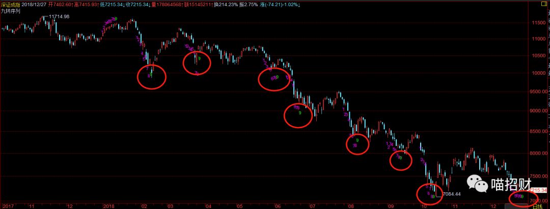 指数方面,昨天的分析中提到“深成指明天收盘价低于7337.6点,将出现日线级别的震荡低位指示”,也就是序列低9的震荡低位指示。