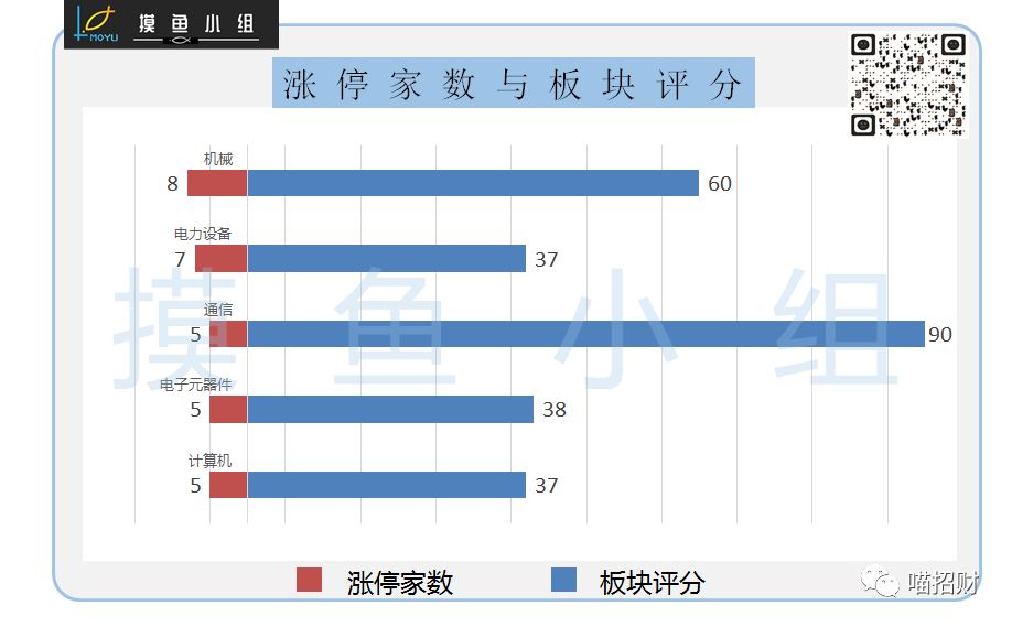 涨停前5家数仍然是熟悉的这几个板块,其中通信板块的流动性非常强,分数极高。