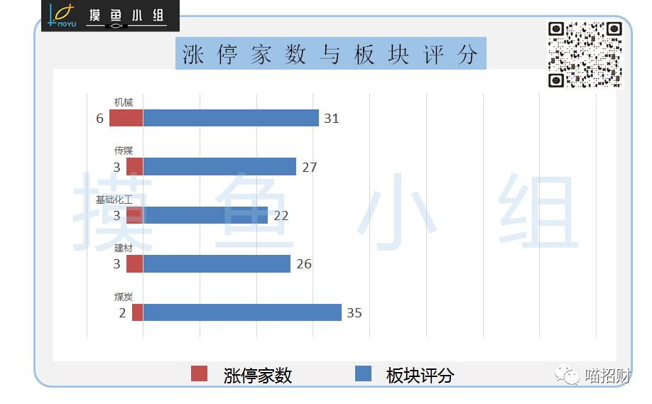 机械板块保持涨停较多,但各版块评分均较低,涨停数据冷却。