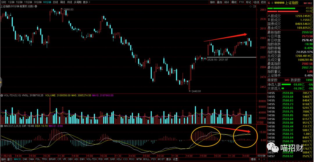 沪指今天出现了60分钟级别的顶背离,市场有所回调。值得注意的是,昨天重点强调了三大指数不同步的问题,即只有深成指昨天创新高,有顶部结构雏形。今天沪指滞后创2440点以来的盘中新高,也触及了高点背离。同时MA60均线的压制作用开始对交易派形成心魔。这是最近强调的不应该随意追缺乏驱动逻辑股票的原因,因为大部分跟随指数涨跌的股票无法独立。
