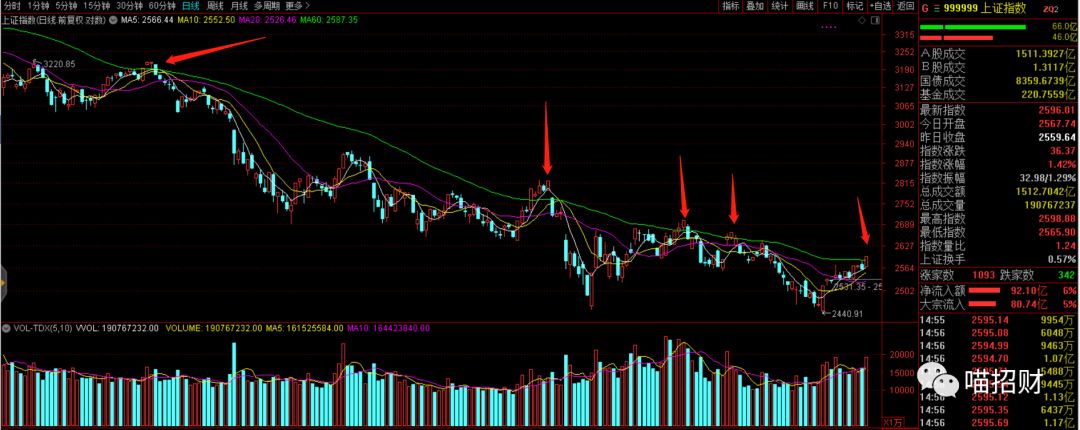 日线层面,这一笔反弹力度较强,今天突破了压制市场的MA60均线,但沪指是第一个突破的指数,后续观察能否站稳,同时关注创业板等指数能否跟随突破。例数去年四次市场失败的突破,今年随着市场下跌降速和超跌,市场有望出现突破的右侧信号。