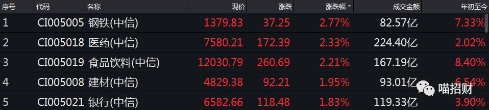 今天盘面钢铁和大消费板块领涨,外资流入明显。