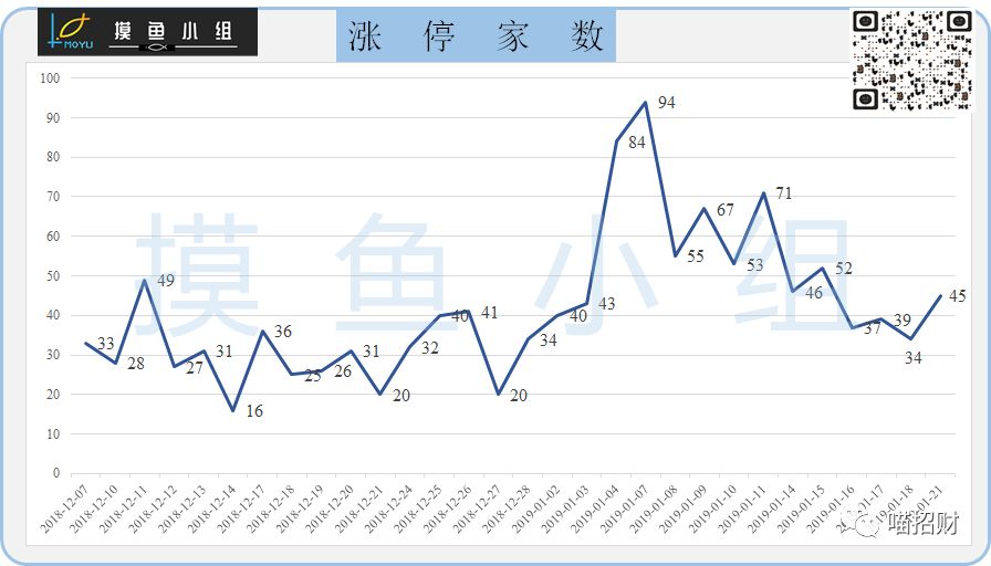 今日涨停家数45家,中止涨停家数下跌趋势。