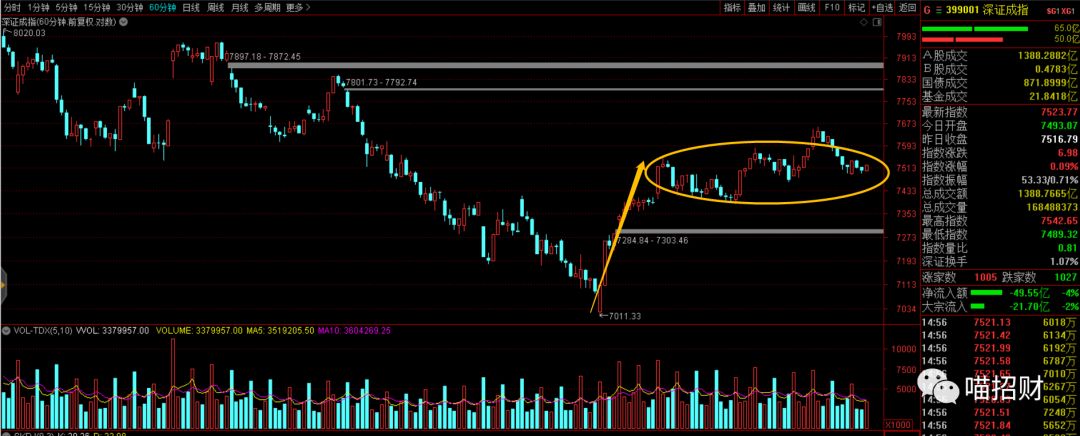 指数今天横盘震荡,调整的态势依然明显。以深成指来分析,目前指数继续运行在上升旗型的形态中,逐渐形成震荡中枢。市场在短期维持着弱平衡的状态。