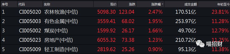 农林牧渔、有色领涨,计算机、食品饮料、医药领跌。