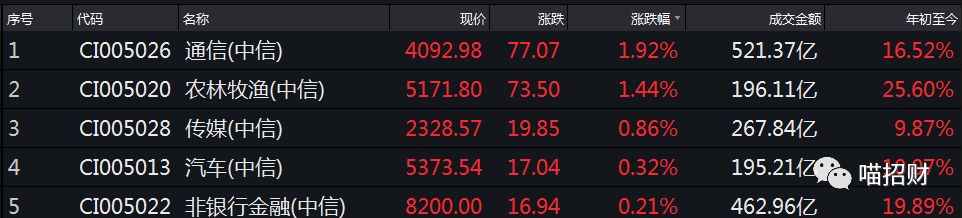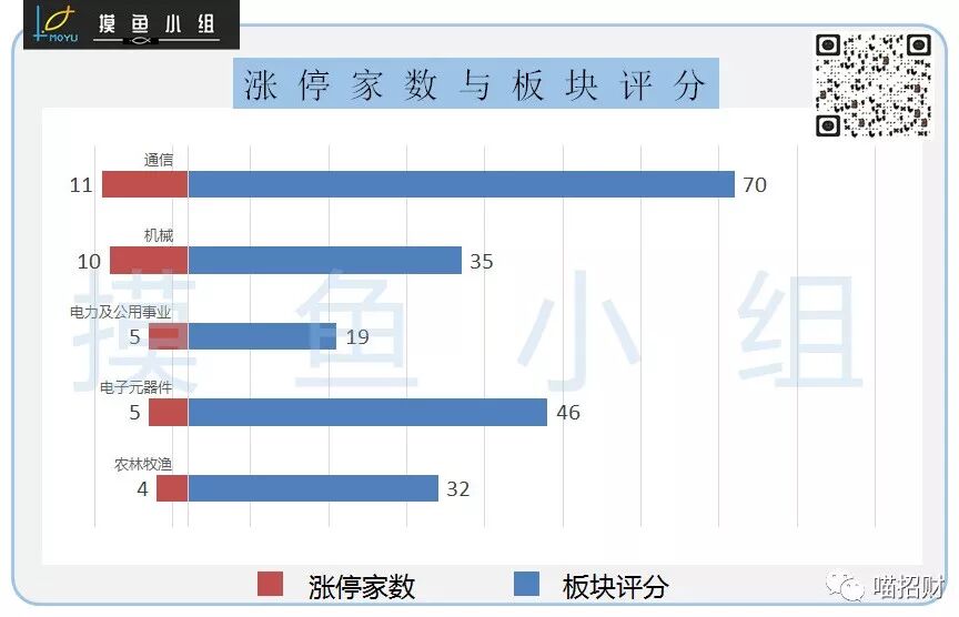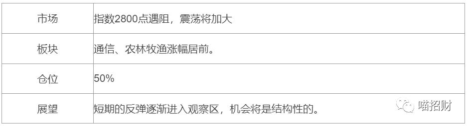 今天通信、农林牧渔依然领涨,5G和猪肉、鸡肉是近期市场最强的板块。在市场仍然偏多时,主线板块具有涨得多、跌得少的特性,这也是小组为何一直强调即使减仓也必须把市场主线板块拿住的原因。