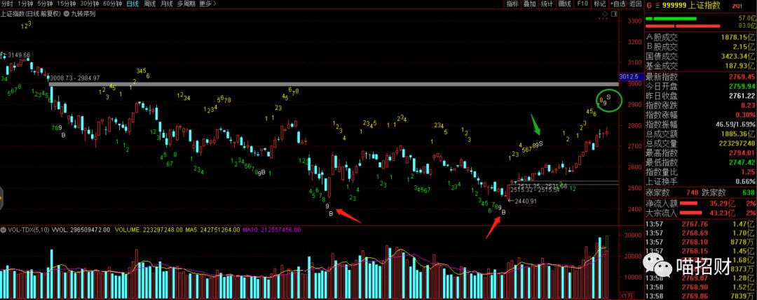 指数今天继续上攻,沪指濒临2800点整数大关,回补了去年十一留下的跳空缺口。不过日线角度出现了超买信号,同时60分钟再次出现了顶背离,按照德马克指标来看,今天正好触发了s信号。预示短期2800点的压力较大,市场可能继续高位震荡,市场机会将大分化。