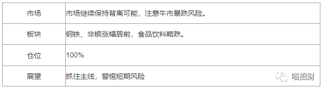 今天板块中,钢铁有色板块领涨,这正好验证了黄所长前几天“先消费后周期,科技股贯穿全过程“的言论。周期股的连续爆发常出现在行情的后半段,这里可以对其进行关注,用来判断市场的情绪节奏。