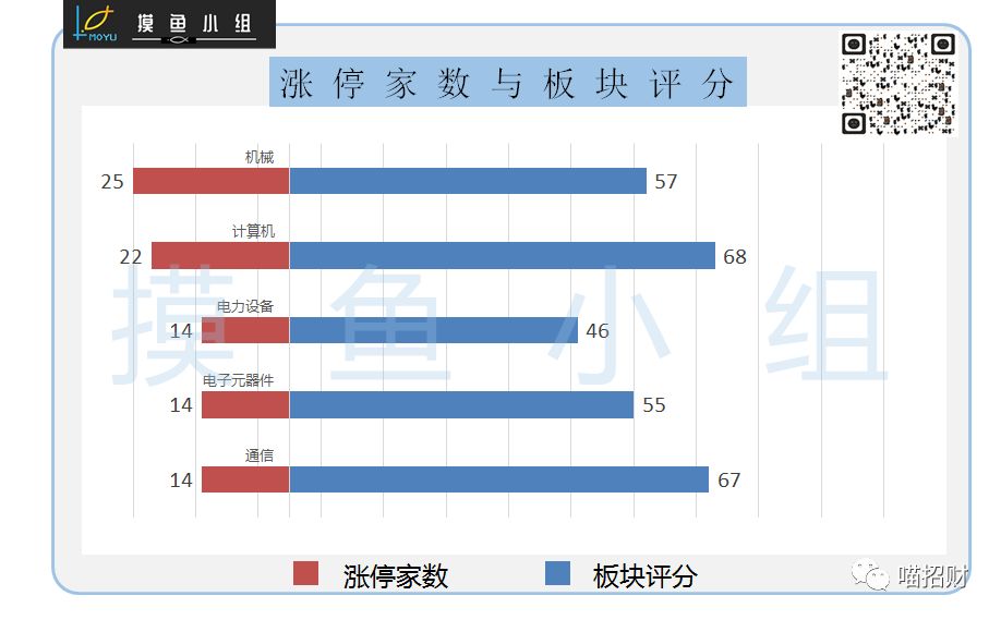 机械、计算机板块涨停家数领先,评分保持。