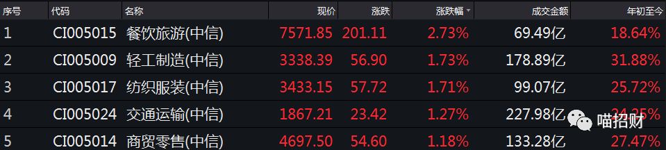 餐饮旅游领涨,农林牧渔、非银板块领跌。