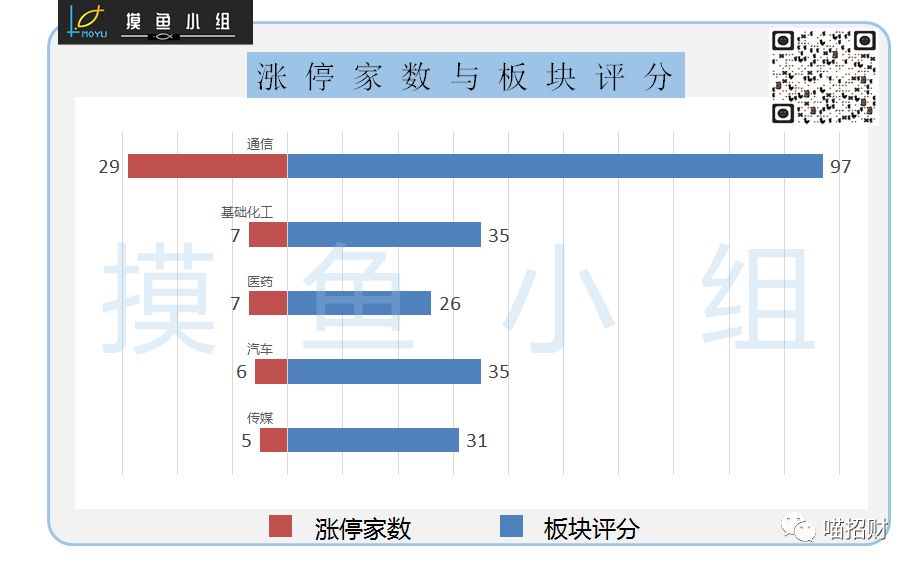 通信板块涨停家数引领市场,评分极高。