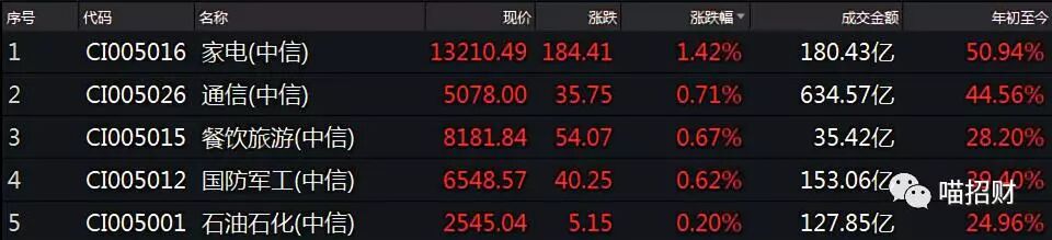 家电、通信板块领涨,汽车、纺织服装板块领跌。