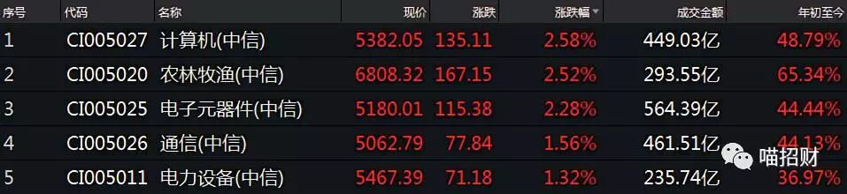 计算机、农林牧渔板块领涨,石油石化、家电板块略跌。