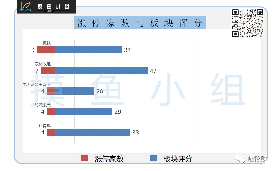 机械、农林牧渔涨停较多,其中农林牧渔板块评分尚可。