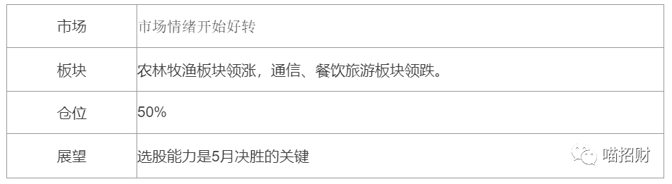 来到5月,市场将再次考验经济数据能否持续回暖,这是考验行情能否纵深的基础,也是近期强调关注业绩兑现能力的核心。从近期防御性品种走强可以看出,资金在向必选消费、大金融移仓,这些板块的特征是短期可以跑出相对收益。场内资金在这次受伤严重后,会更加谨慎考量投资组合,稳妥的策略是等待市场风险偏好回归再大幅加码,否则市场即使没有连续的下跌,却大概率出现资金继续向个别头部企业集中的现象,选股能力是5月决胜的关键。
