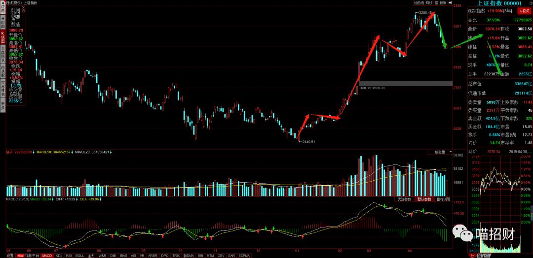 今天4月收盘,上证指数走出了2浪的调整格局,当前指数走出2浪A的调整尾声,该笔落脚点可能在今天或节后形成,节后走出2浪B的反弹的概率较大。