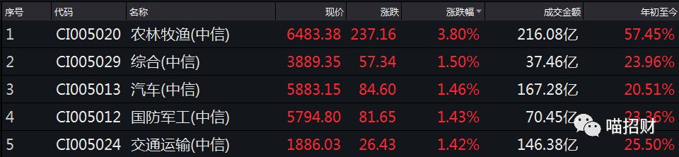 农林牧渔板块领涨,通信、餐饮旅游板块领跌。