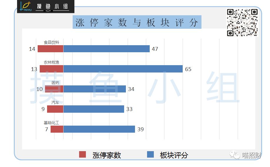 食品饮料、农林牧渔涨停领先,农林牧渔评分不错。