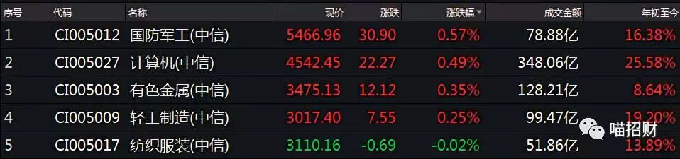 国防军工、计算机略涨,农林牧渔板块领跌。