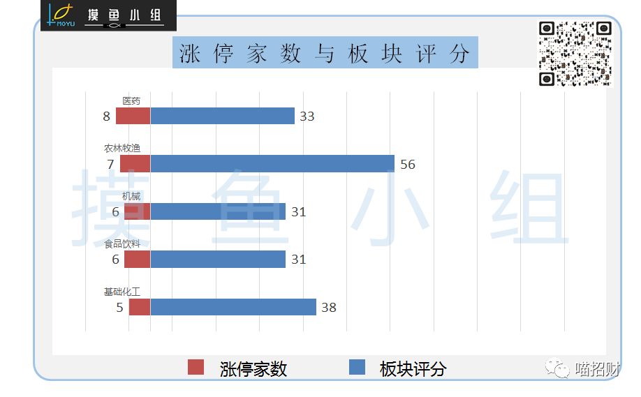 医药、农林牧渔涨停领先,农林牧渔评分不错。