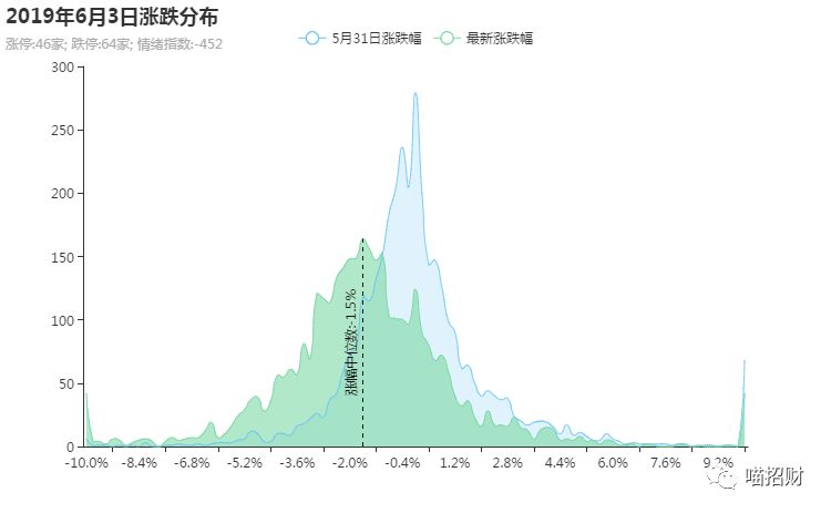 涨跌分布左偏,涨幅中位数-1.5%,市场普跌。