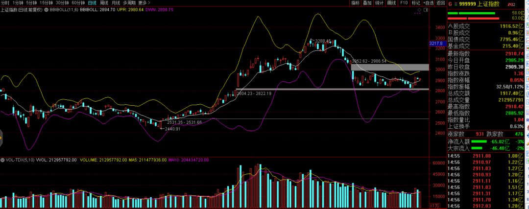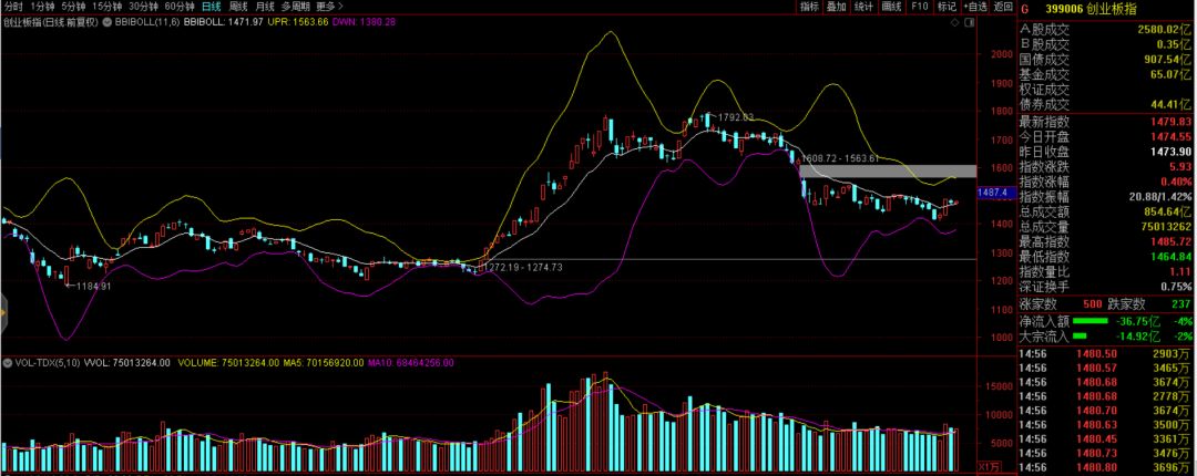 按照多空布林线来观察,虽然市场横盘,但重心有所上移,三大指数均已站稳了中轨的位置。