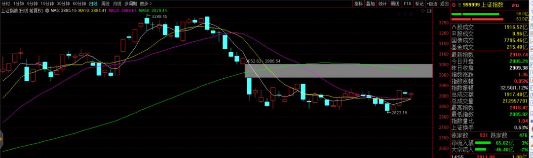 今天指数半日完成回调,午间出现企稳。以沪指为例,MA5、MA10、MA20出现了汇聚,均线粘合且走平,说明市场的筹码集中于这里,短期即将选择方向。
