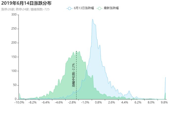 涨跌分布左偏,涨幅中位数-2.2%,市场跌幅较大。