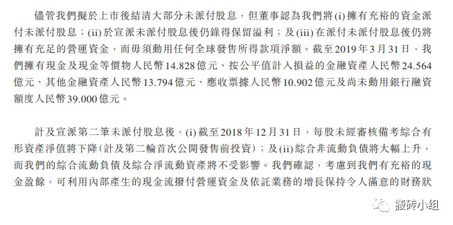 账上的真钱,是不够支付这些股息的,公司在公告中专门针对这个讲了讲,说虽然是上市前创设这个应计负债,上市后结清,但是公司整体的流动性是充足的,不会用融来的钱去支付。
