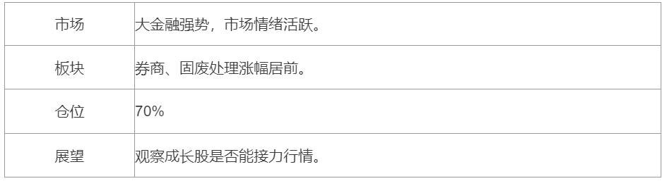 大金融的大涨给了市场定心丸,而今天的涨停家数只有68家,做多情绪似乎还没到高涨之时,未来几天重要的是观察是否市场的做多情绪能起来,毕竟柚子来了市场才能更活跃。