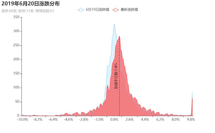 涨跌分布居右,涨幅中位数1.4%,市场继续大涨。