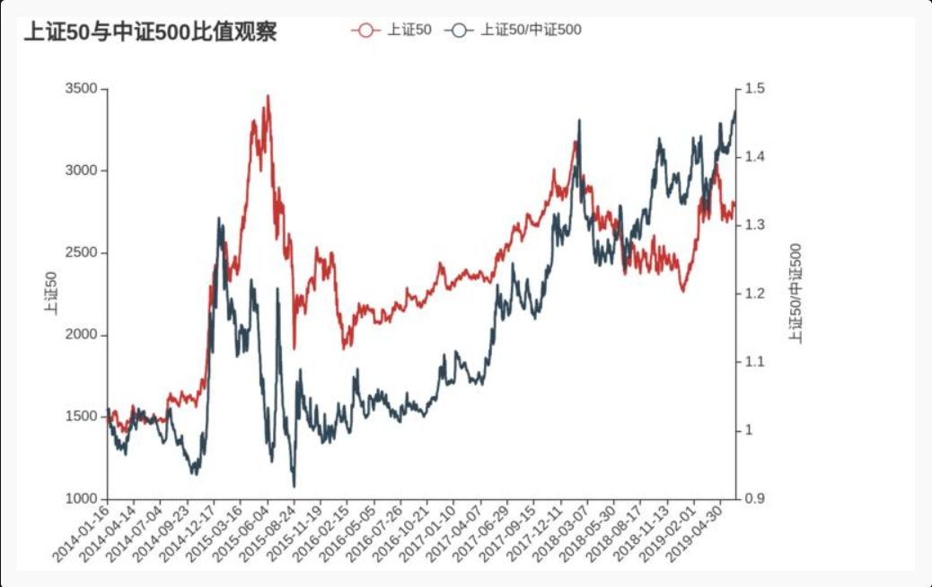而核心资产的消费股,并没有出现补跌,反而继续高举高打,说明资金的介入非常深,大家依然对这些稳定现金流的奶牛青睐有加。昨天小组谈到的那张图的上证50/中证500比值问题,今日这个现象愈加显著。