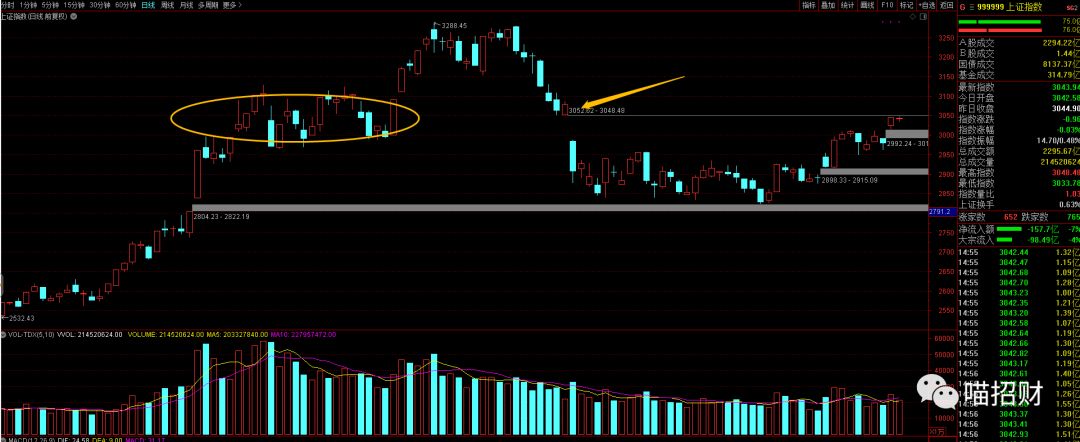 指数全天维持了窄幅震荡的格局,5月份留下的缺口又得到了一定的回补。市场在3000点上方还是有所忌惮的,没有一蹴而就的能力。昨天上证50的反弹,使得50指数已经接近4月份的前高,这里的压力显而易见,资金在中报没有明确全面超预期的背景下,还是挺难直接突破的。所以昨天情绪方面的宣泄之后,缺口回补之际,市场陆续会回到自己的轨道中,逐渐关注即将到来的中报季。